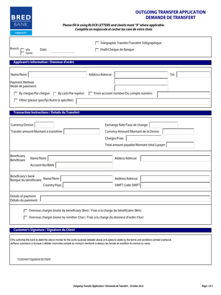 Outward-Telegraphic-Transfer-Application-Form | PDF | Chèque | Banques