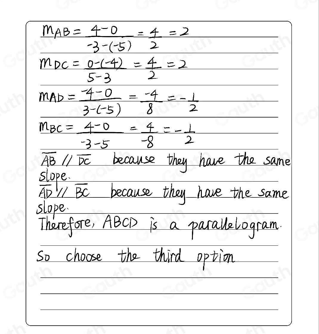 Solved: Show that quadrilateral ABCD is a parallelogram. slope of ...