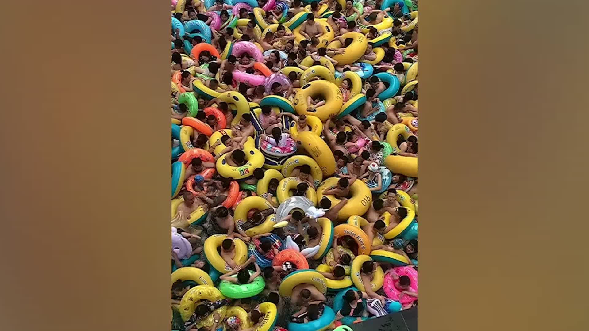 Summer madness! Visitors to packed pool buy rubber rings to avoid CRUSH ...