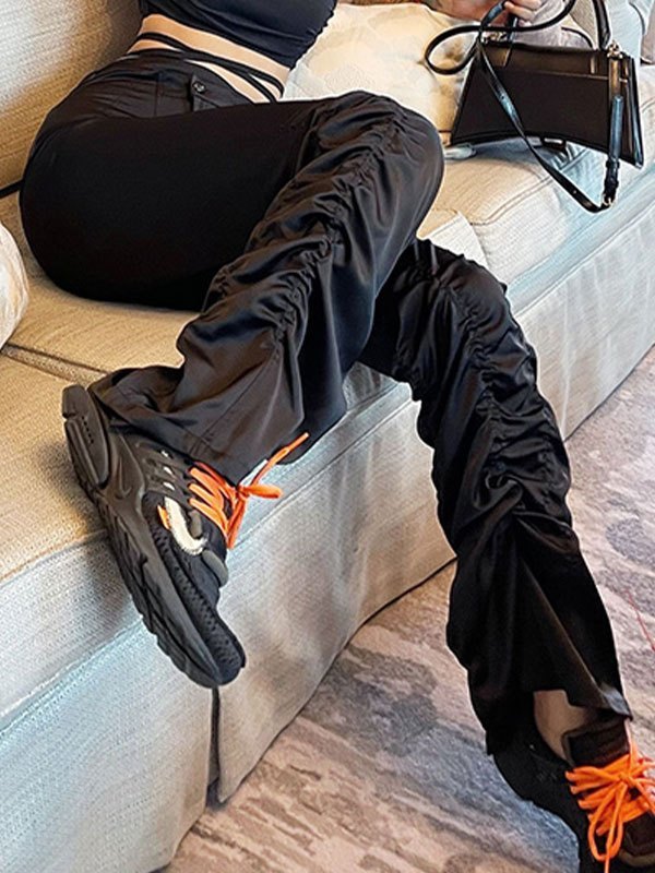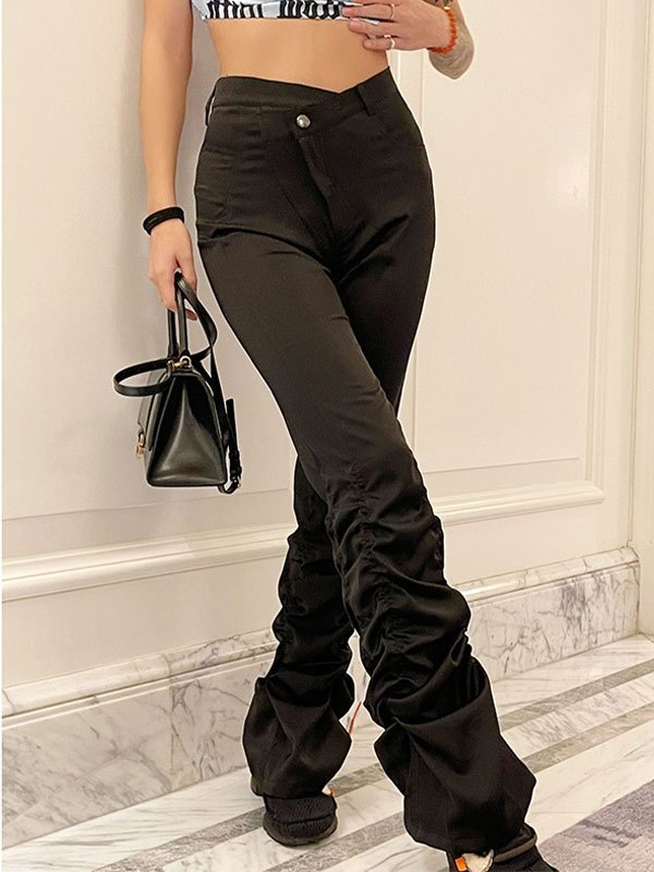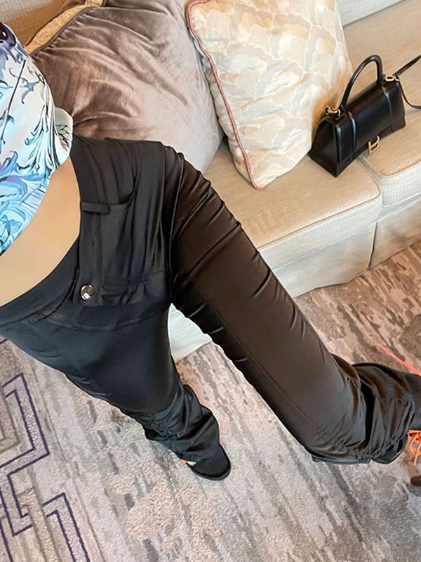 Emmiol Free shipping 2026 Satin Cross Over Stacked Pants Black M in ...