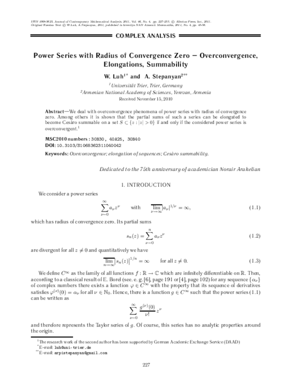 (PDF) Power series with radius of convergence zero — Overconvergence ...