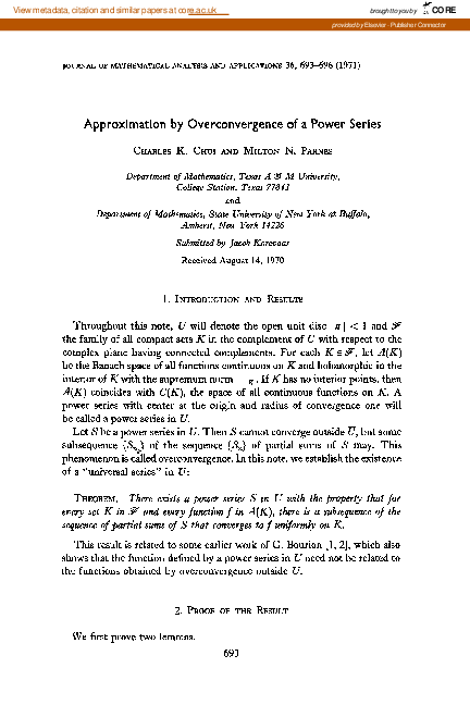(PDF) Notes on the Overconvergence of Fourier Series and Hadamard ...