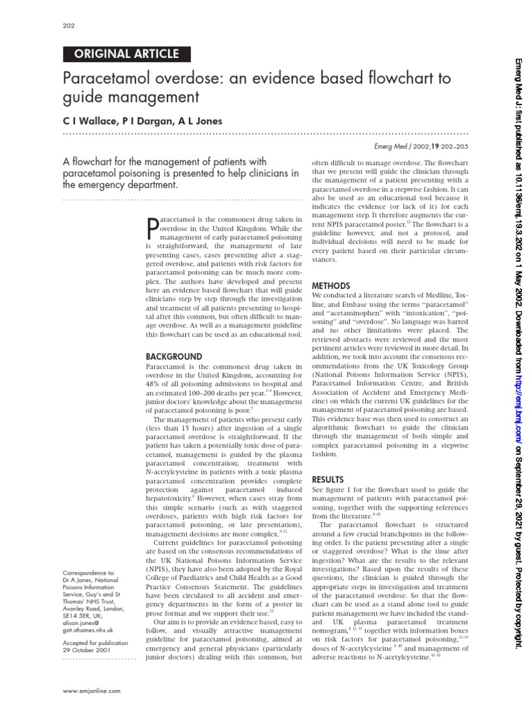 Paracetamol Overdose: An Evidence Based Flowchart To Guide Management ...