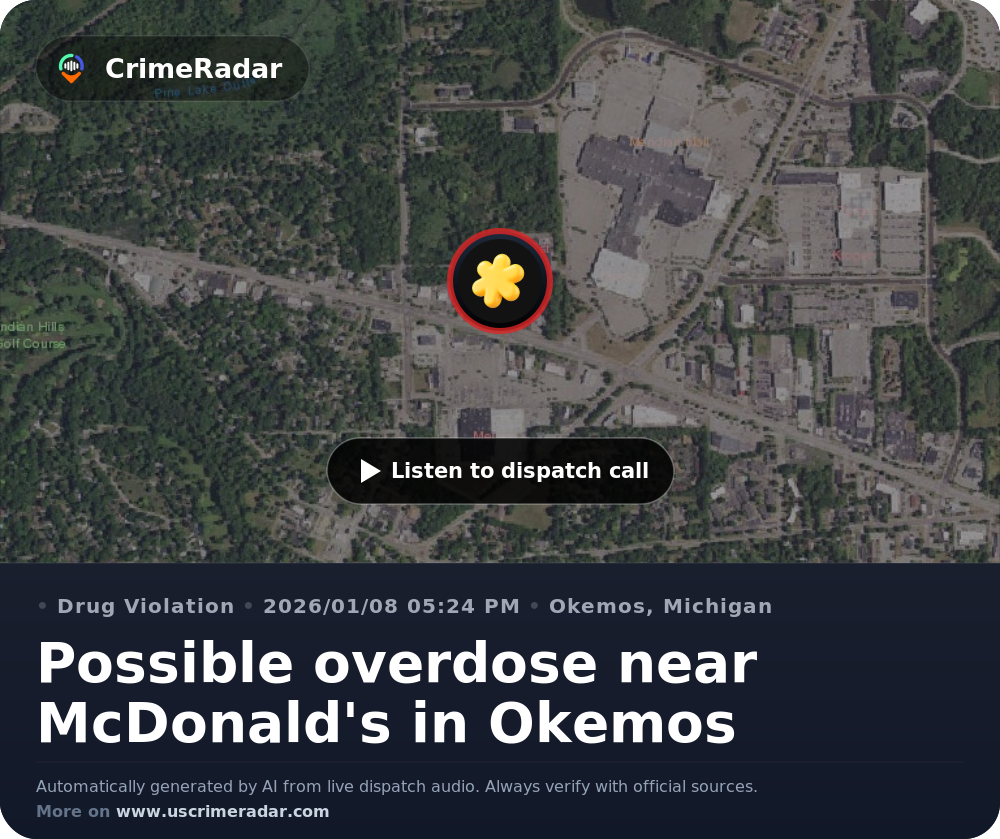 Possible overdose near McDonald's in Okemos, Okemos MI | CrimeRadar