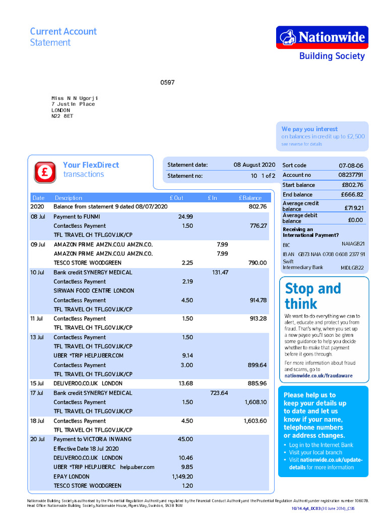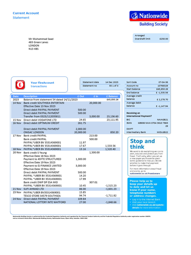 Nationwide Bank Statement | PDF | Cash | Overdraft