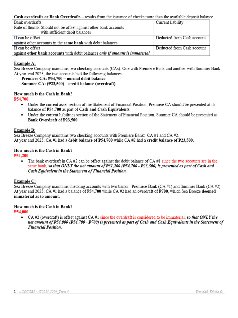 ACCCOB2 Unit 2 Cash and Cash Equivalents Bank Overdraft Examples | PDF ...