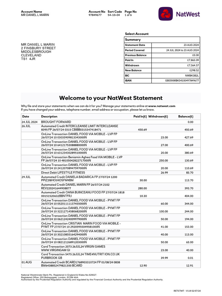 NatWest Bank Statement Summary 2024 | PDF | Overdraft | Interest