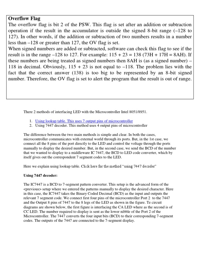 Overflow Flag: Using Lookup Table. This Uses 7 Output Pins of ...
