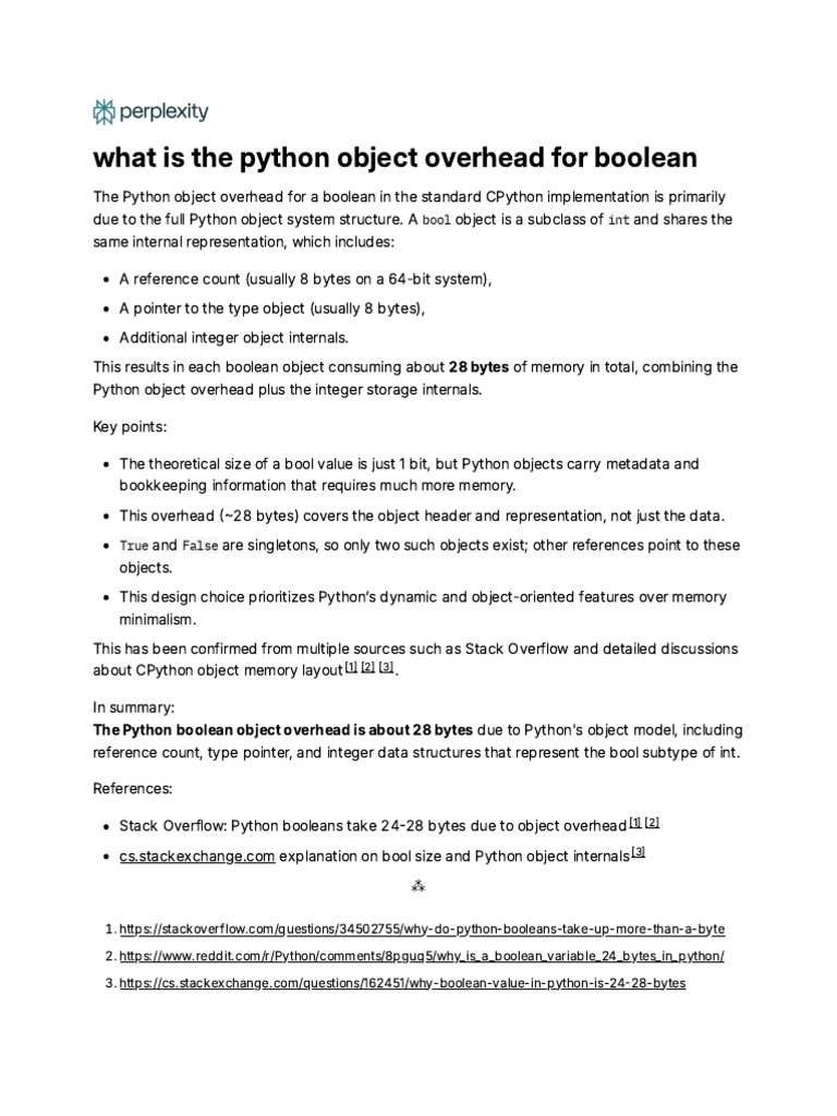 What Is The Python Object Overhead For Boolean | PDF
