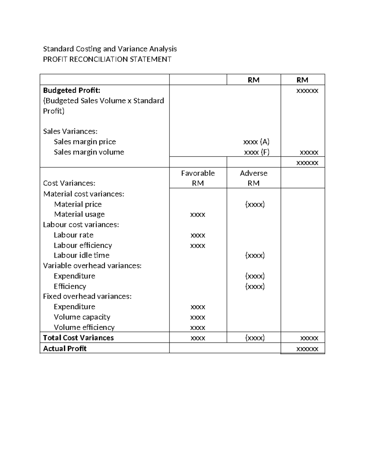 5. Format Profit Reconciliation Statement - Standard Costing and ...