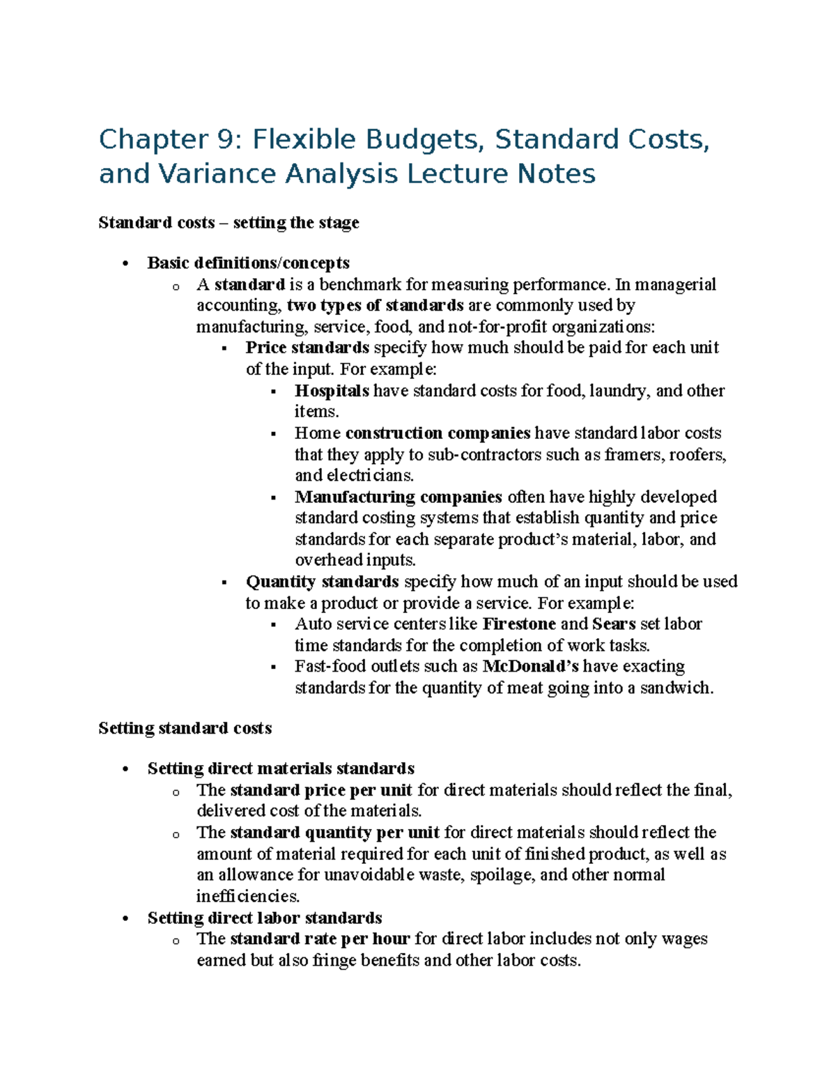Chapter 9: Flexible Budgets, Standard Costs & Variance Analysis Lecture ...