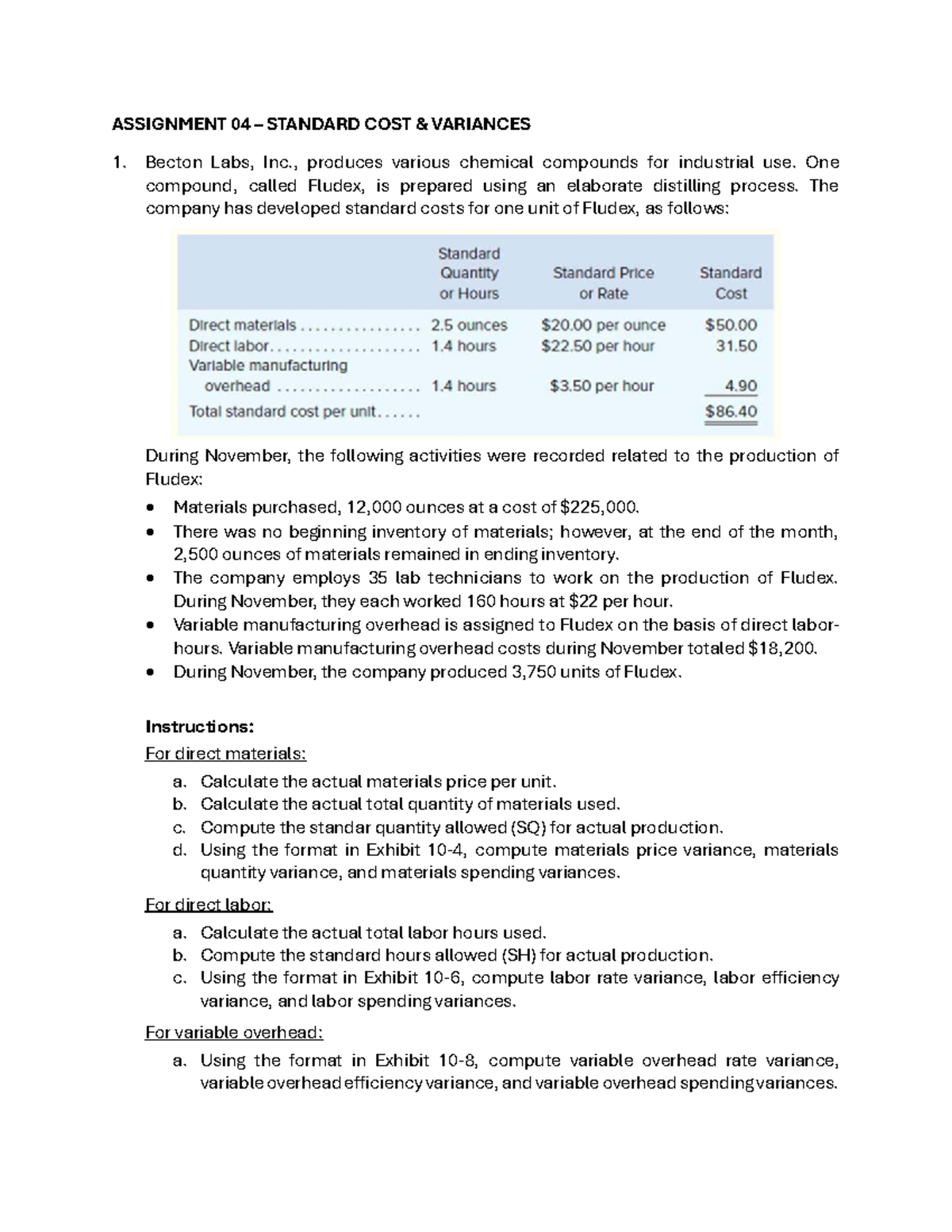 Assignment 04: Standard Cost Variances Analysis for Fludex Production ...