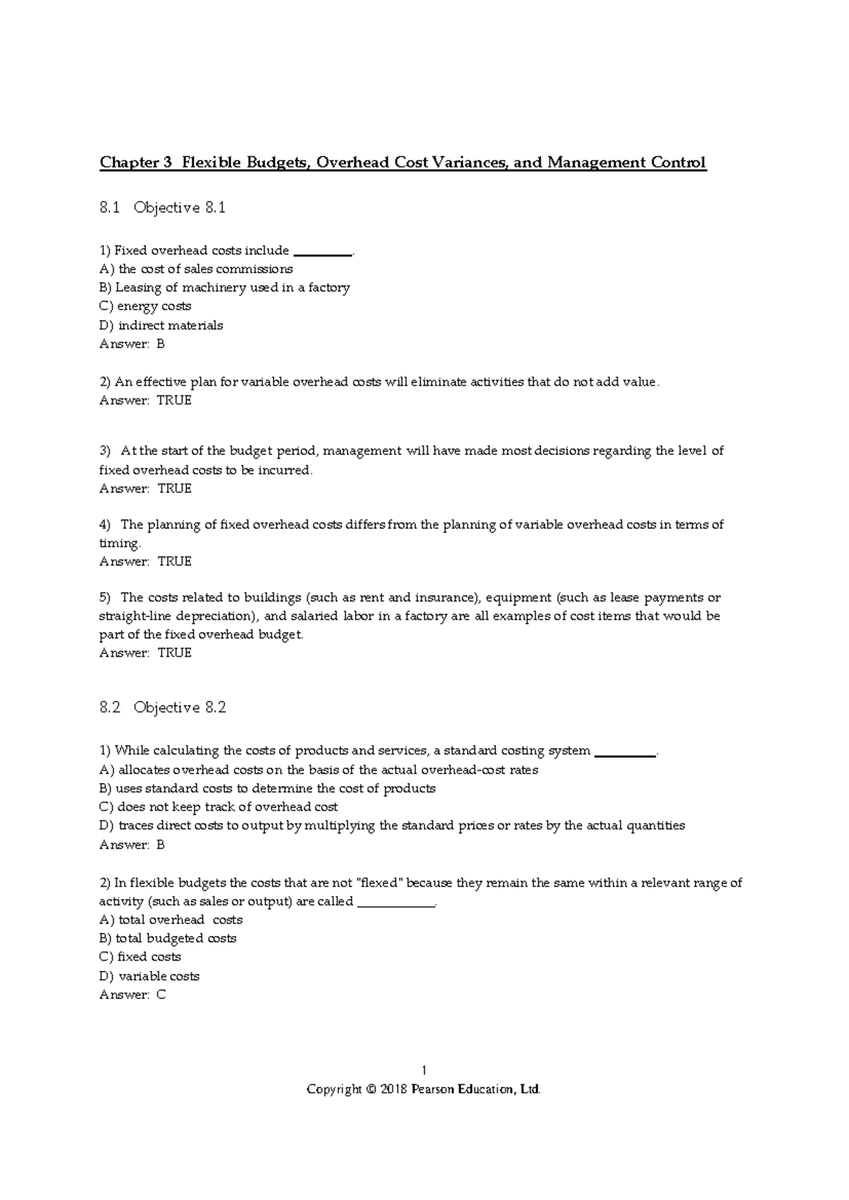 Cost Accounting Test Bank TB3: Flexible Budgets & Overhead Variances ...