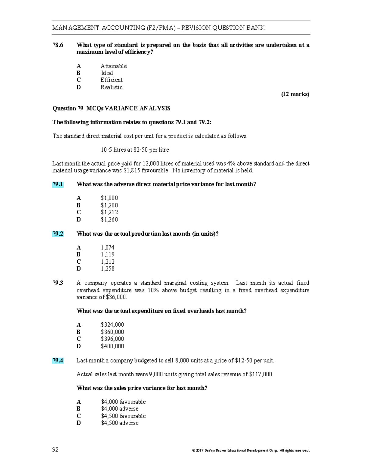MANAGEMENT ACCOUNTING REVISION QUESTION BANK 79: Variance Analysis ...