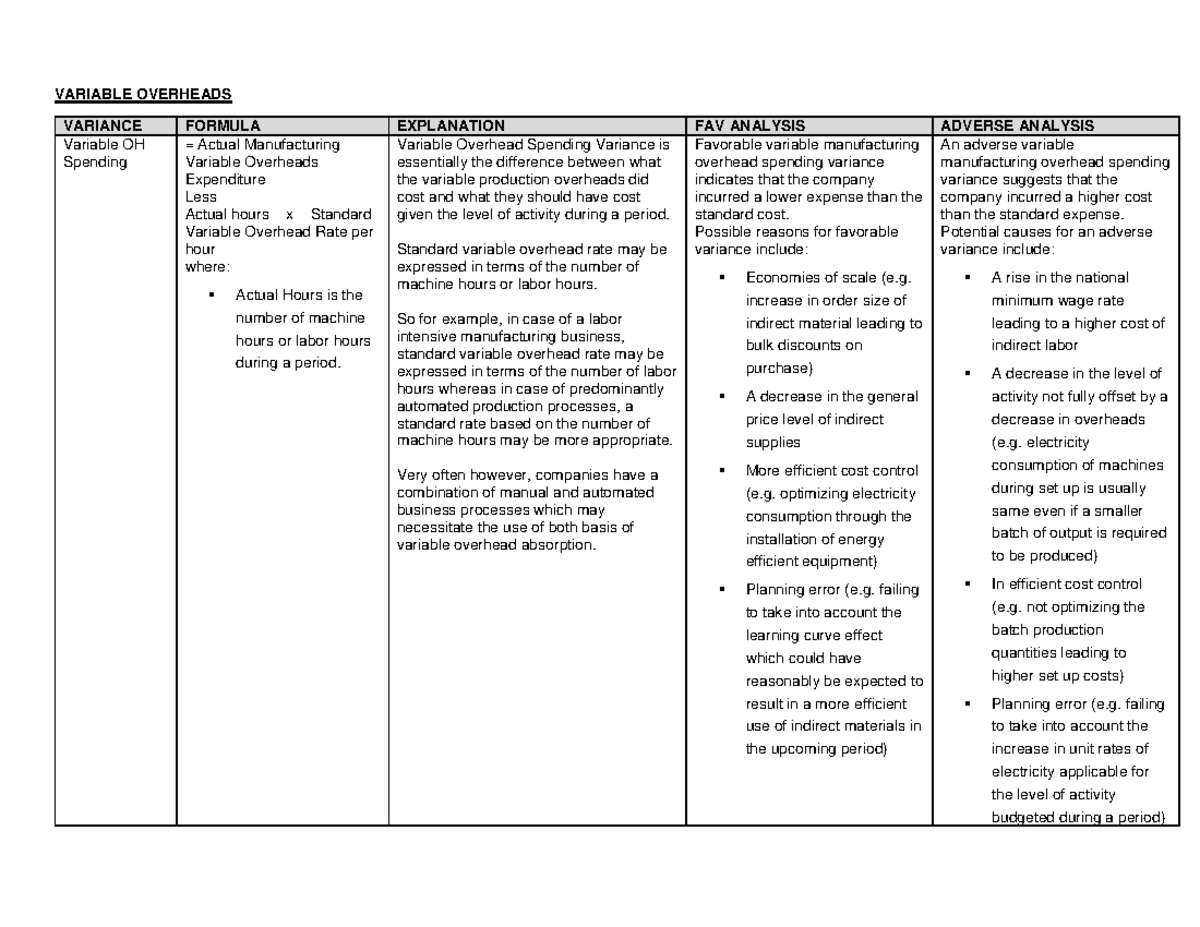 Topic 9 - Management Accounting variance notes - Variable overhead ...