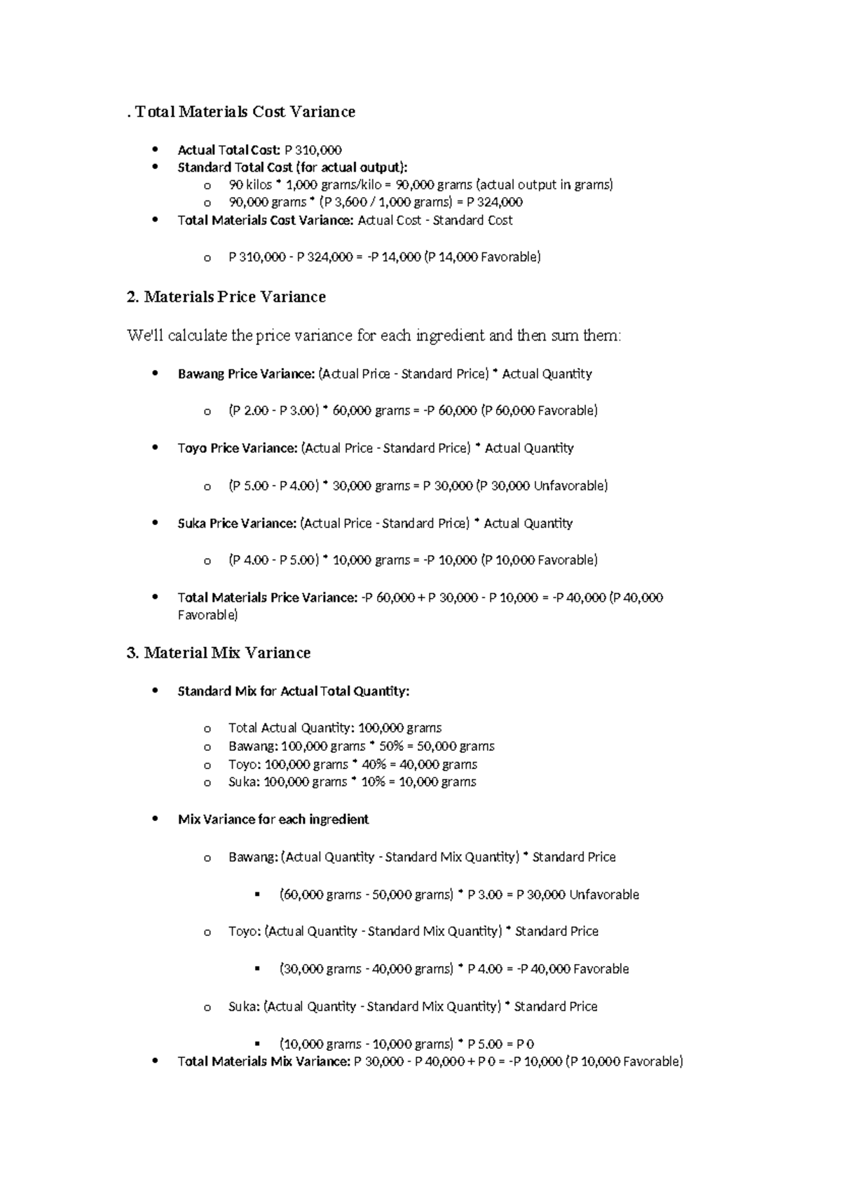 Total Materials Cost Variance Analysis (ACCT 101) - Studocu