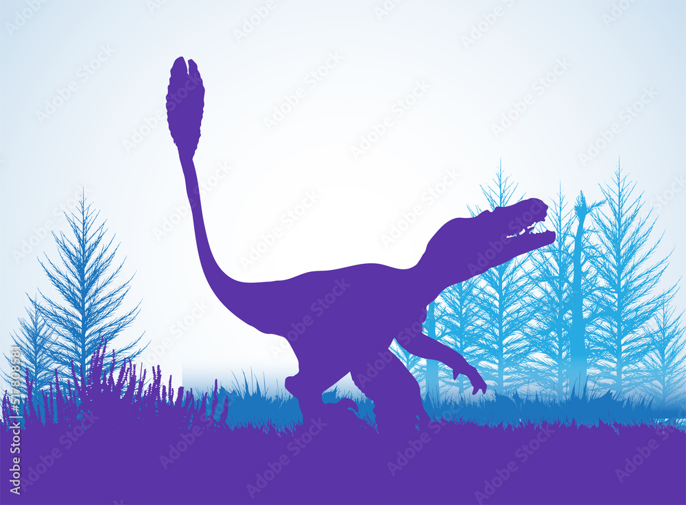 Photo & Art Print Feathered Velociraptor Dinosaurs silhouettes in ...