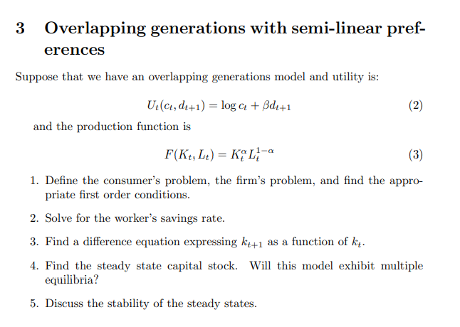 Solved 3 Overlapping generations with semi-linear pref- | Chegg.com
