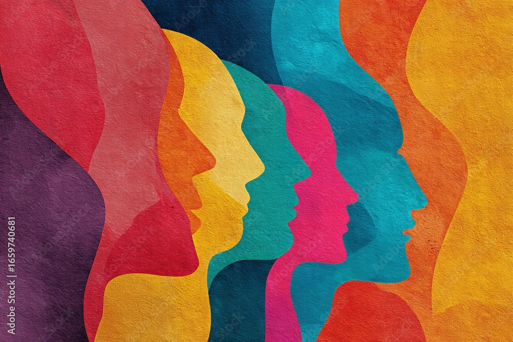 Vibrant abstract art illustration featuring colorful overlapping human ...