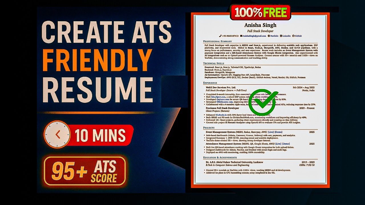 How to make ATS Friendly Resume 🔥| Overleaf Resume Tutorial | Free ...