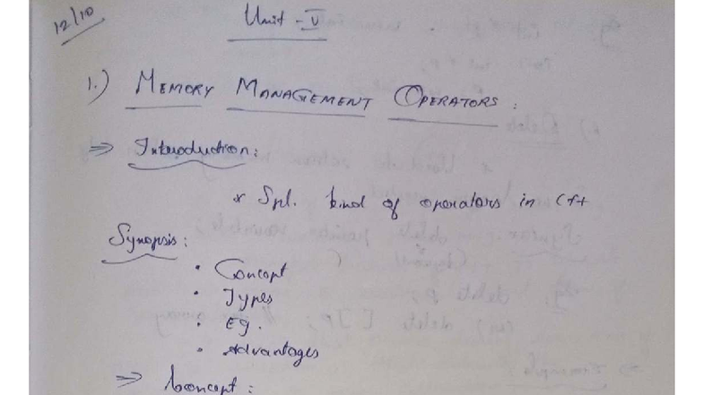 OOAD (Unit 3, 4, 5) - Memory Management & Operator Overloading Notes ...