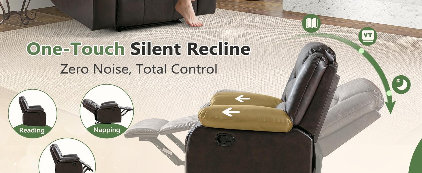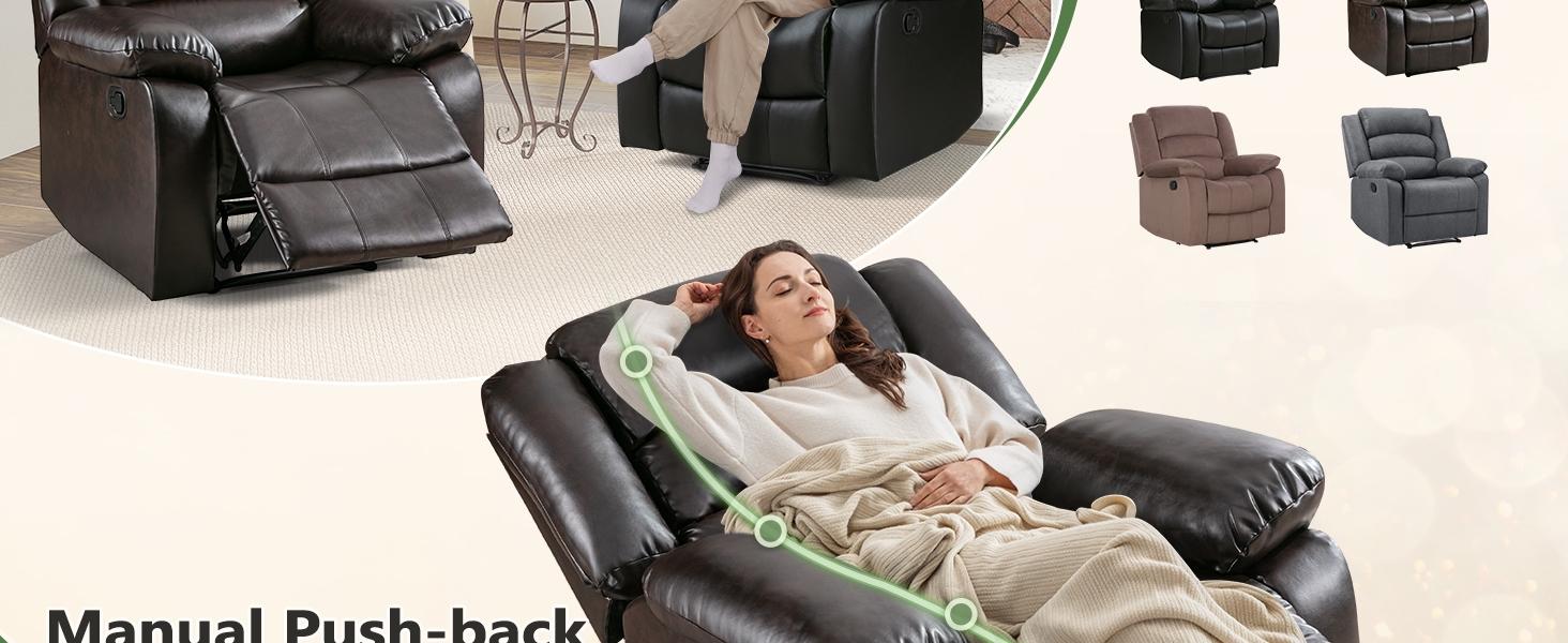 Manual Recliner Chair with Overstuffed Arm,Modern PU Leather Reclining ...