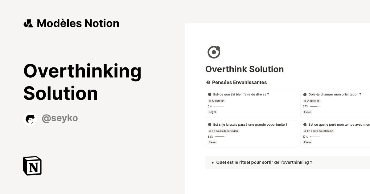 Overthinking Solution | Modèle créé par Seyko | Marketplace Notion