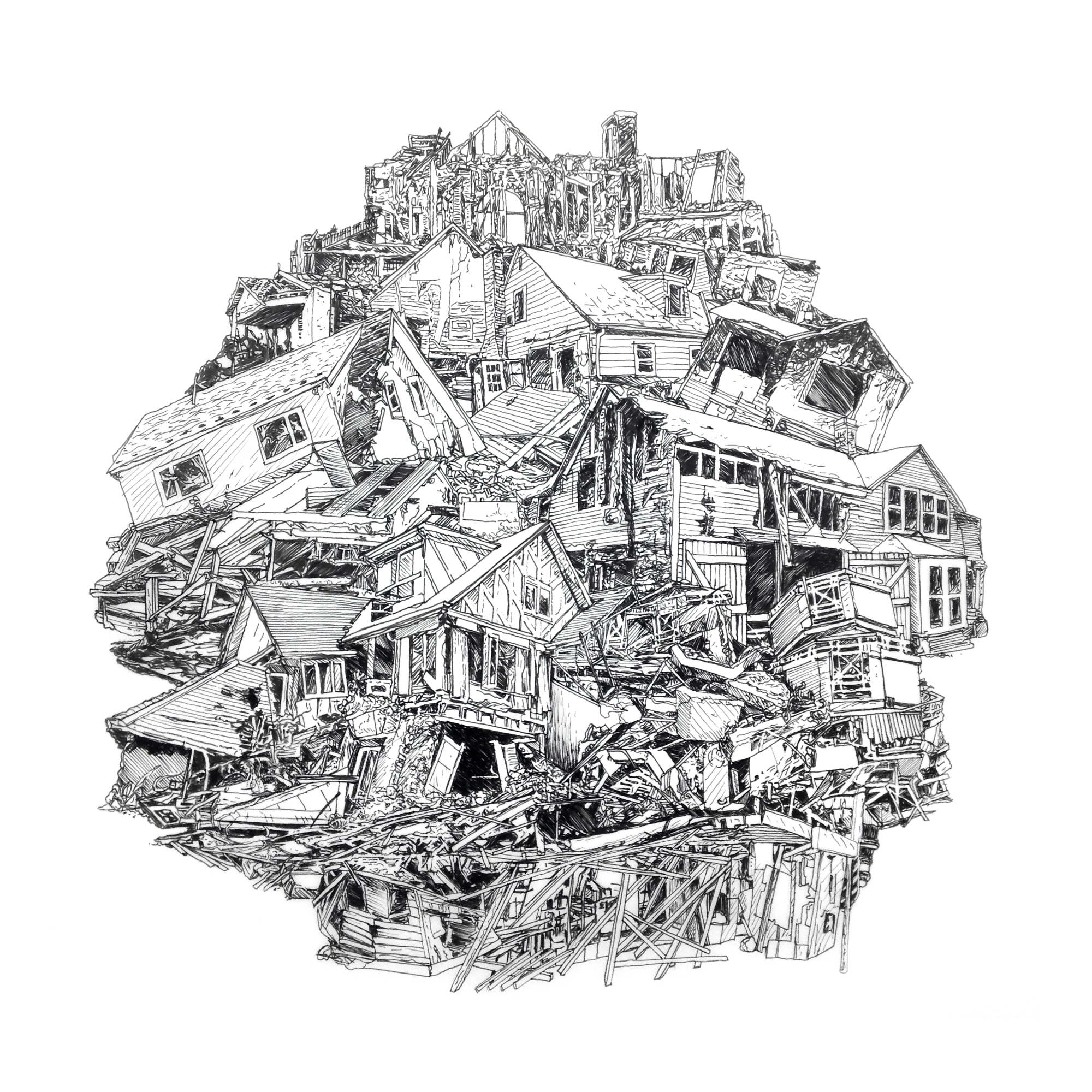 Collapsing buildings. Drawing by H Schlagen | Saatchi Art