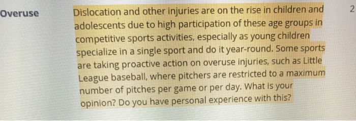 Solved 2 Overuse Dislocation and other injuries are on the | Chegg.com