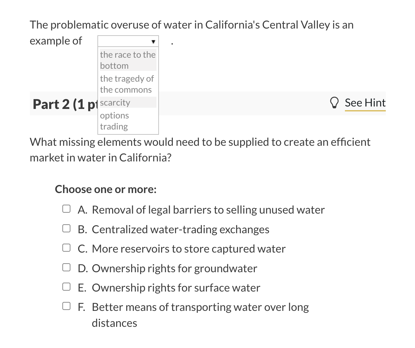 Solved The problematic overuse of water in California's | Chegg.com