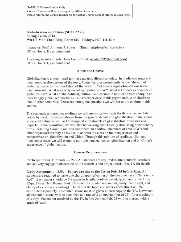 Sample Course Outline Overview | PDF
