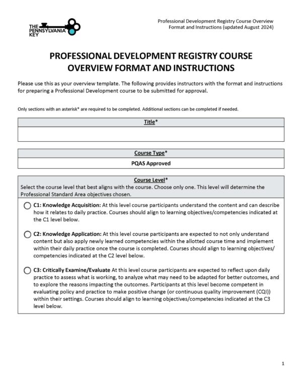 Course Overview Template - The Pennsylvania Key