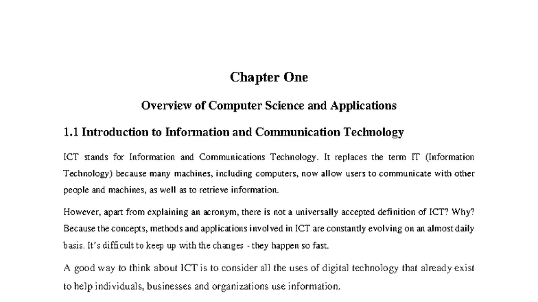 Ch 1: Overview of Computer Science & ICT Applications - Studocu