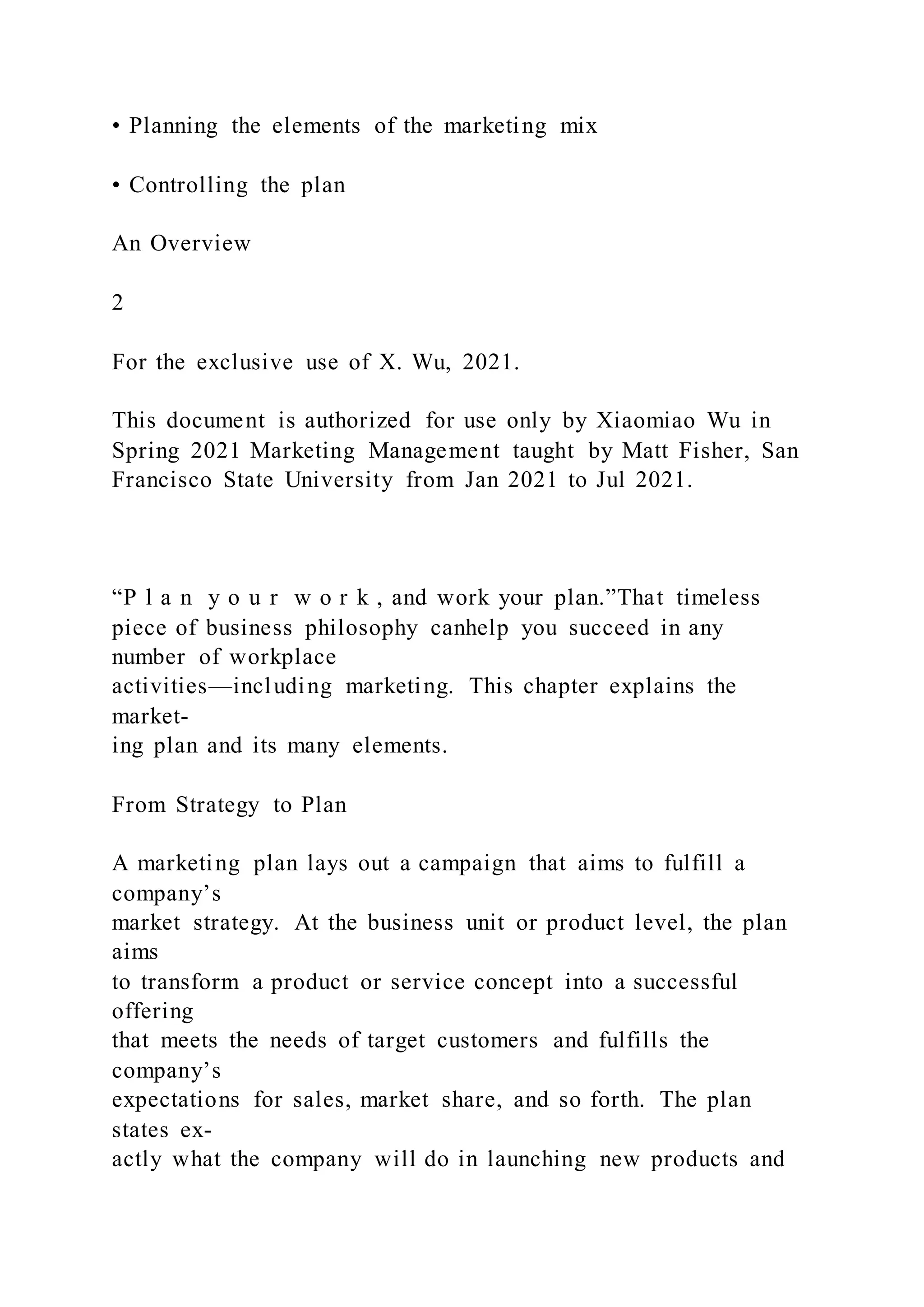 Creating a Marketing Plan An OverviewE x c e r p t | DOCX