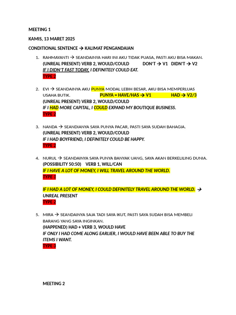 Conditional Sentences: Types 1 & 2 Overview with Examples - Studocu