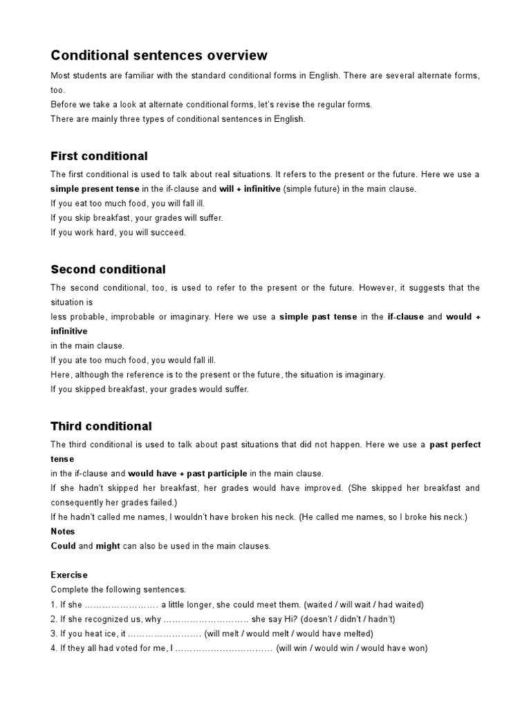 Conditional Sentences Overview: Types and Examples - Studocu