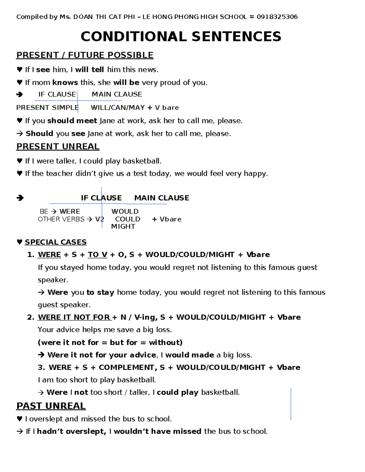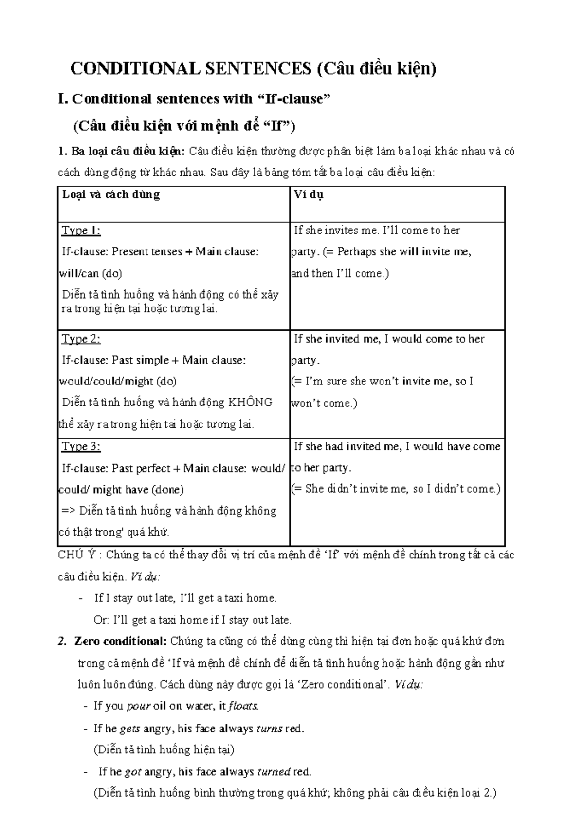 Conditional Sentences Overview: Types I, II, III & Inversion - Studocu