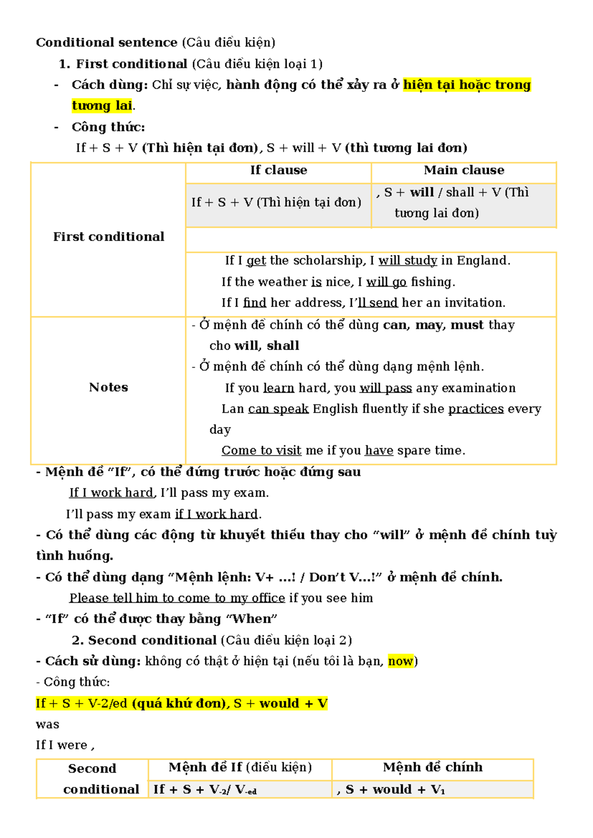 Conditional Sentences Overview - B2 Level Study Guide - Studocu