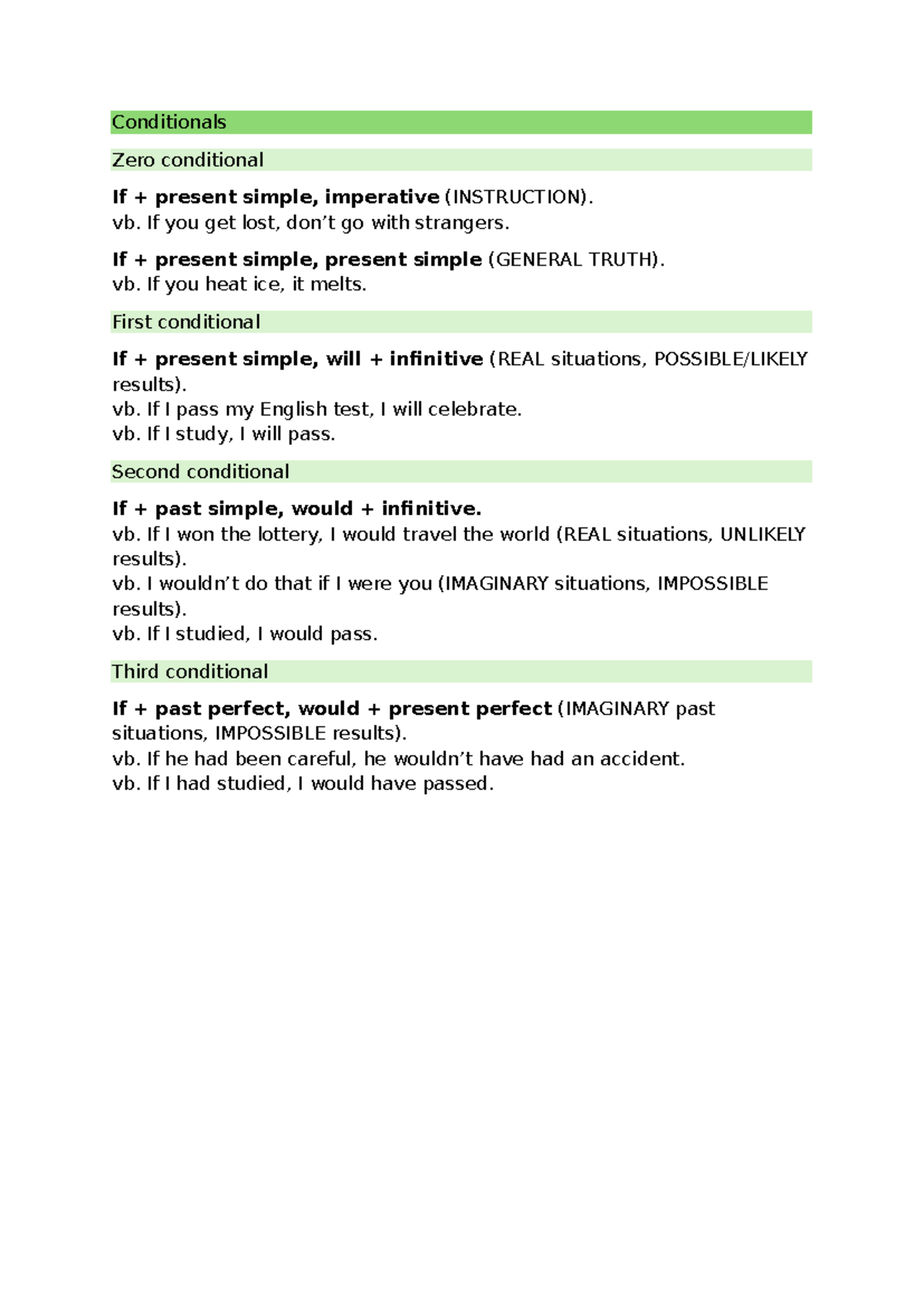 Conditionals Overview: Zero to Third Conditional (ENG 101) - Studocu