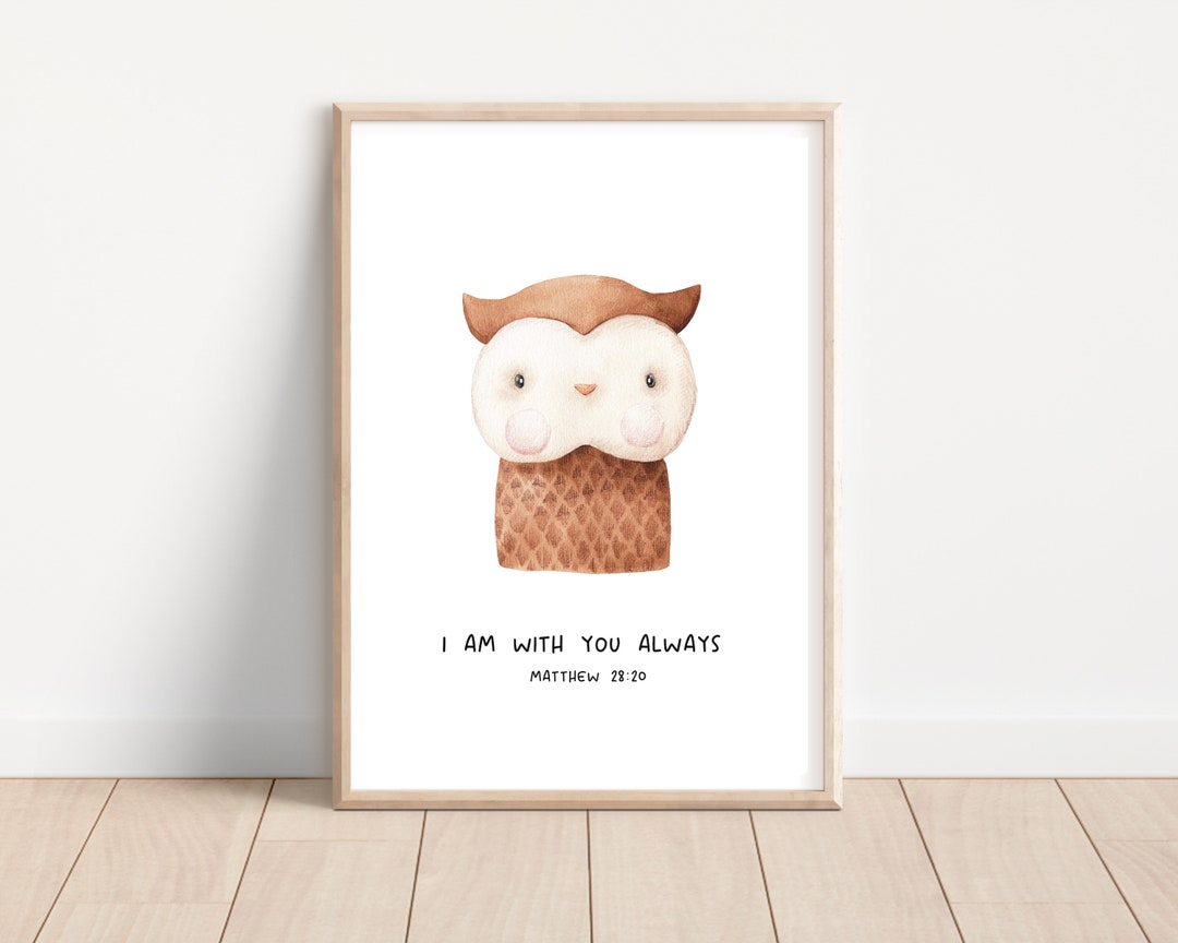 Christian Bible Poster Kids Poster Print Owl Animals Matthew 28:20 ...