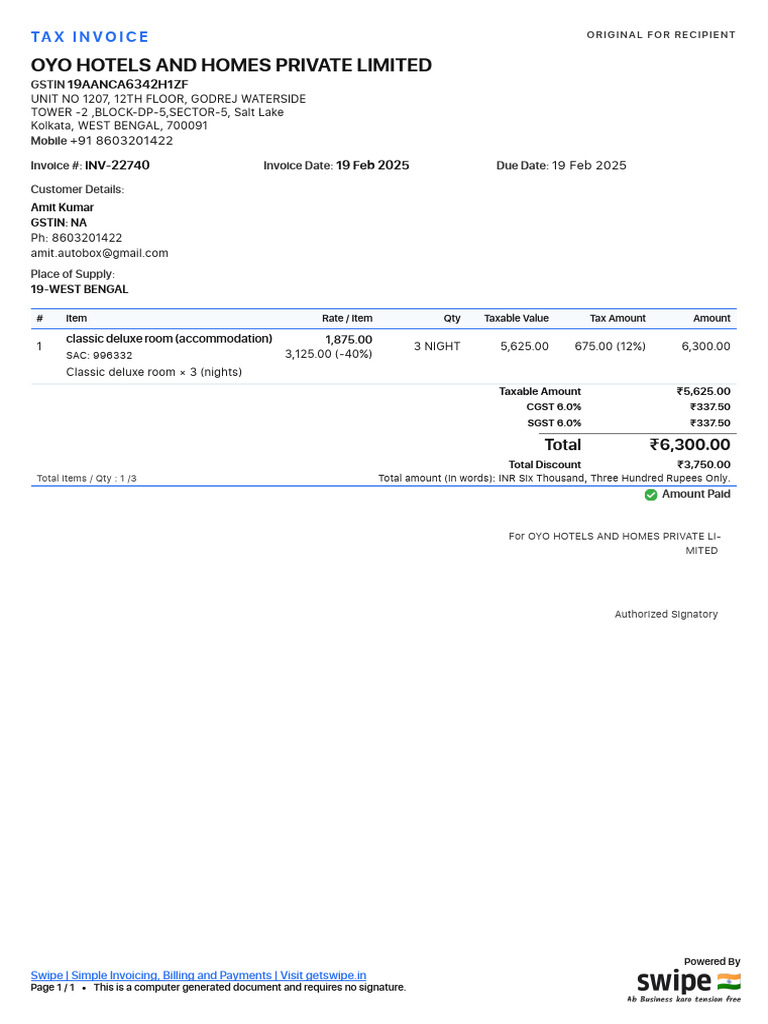 OYO Invoice | PDF | Revenue | Value Added Tax