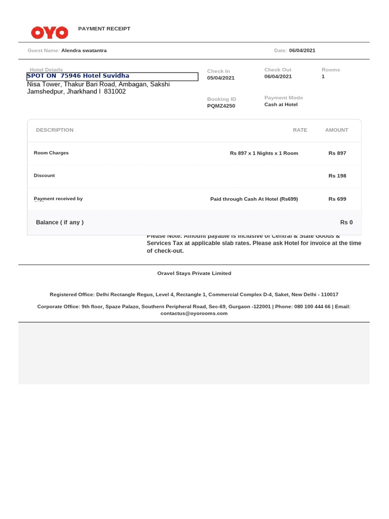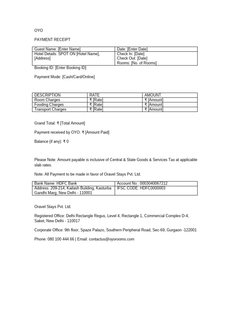 OYO Hotel Payment Receipt Template | PDF | Invoice | Financial Services