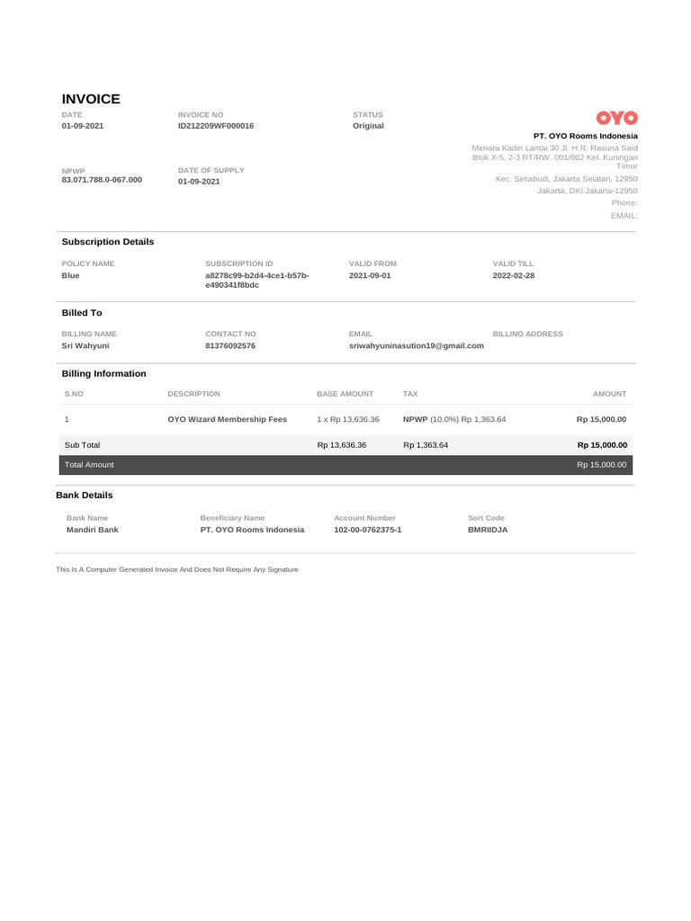 OYO Rooms Invoice ID212209WF000016 | PDF