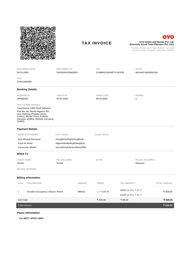 OYO Tax Invoice for Booking JPM56359 | PDF | Payments | Money