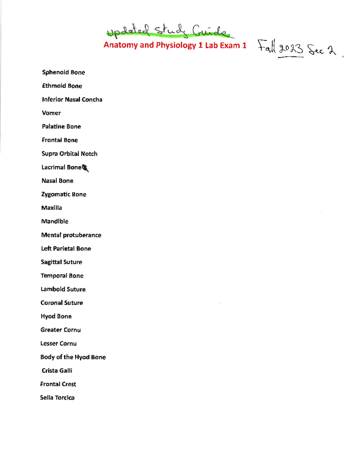 A&P Lab Exam 1 Study Guide - updated study Guide Anatomy and Physiology ...