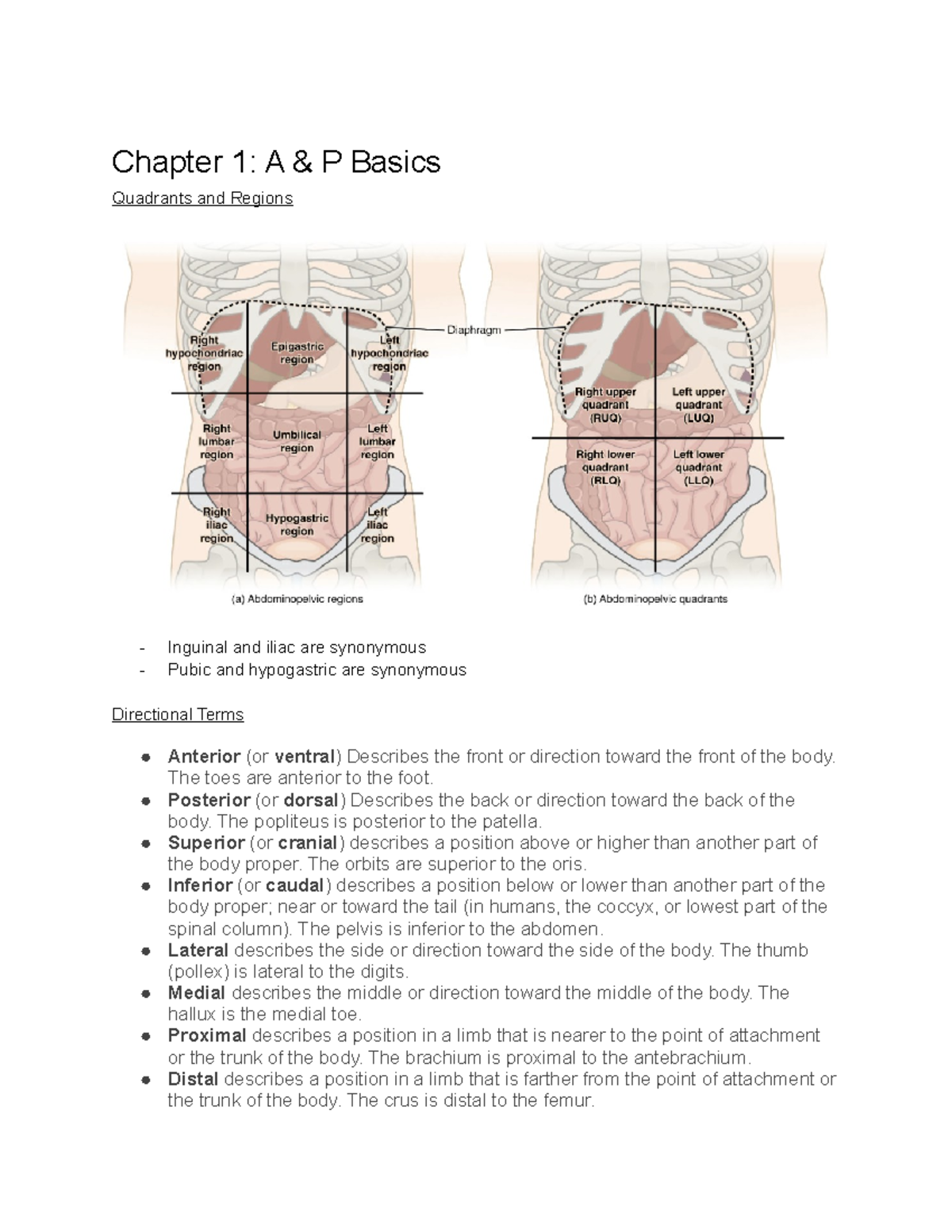 PHYL 141 Notes Ch 1-4 - Chapter 1: A & P Basics Quadrants and Regions ...