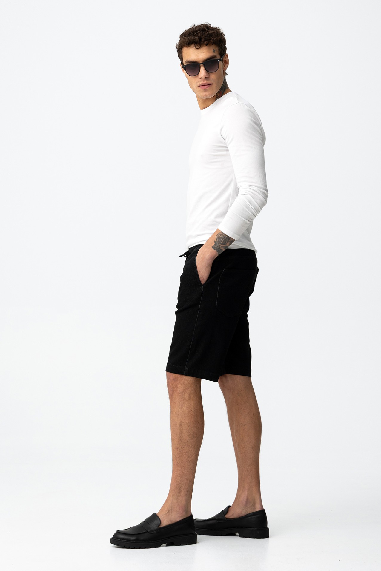 Black Slim Fit Shorts - 10064677_P00 - Tiffosi
