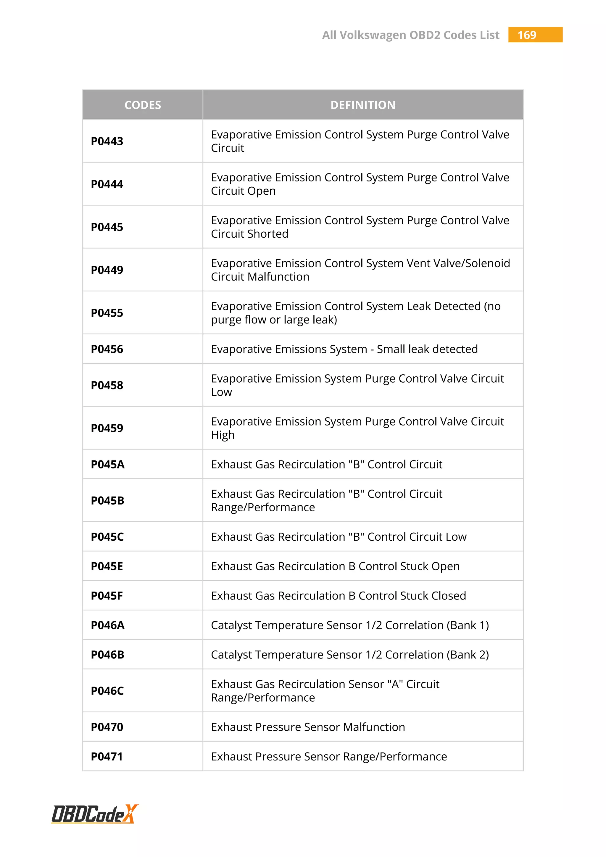 All Volkswagen OBD2 Trouble Codes List – OBDCodex | PDF