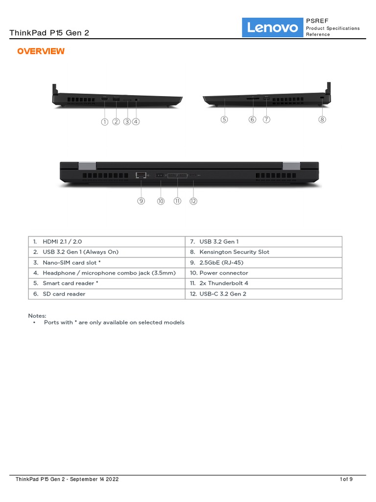 ThinkPad P15 Gen 2 Spec | PDF | Usb | Computer Architecture
