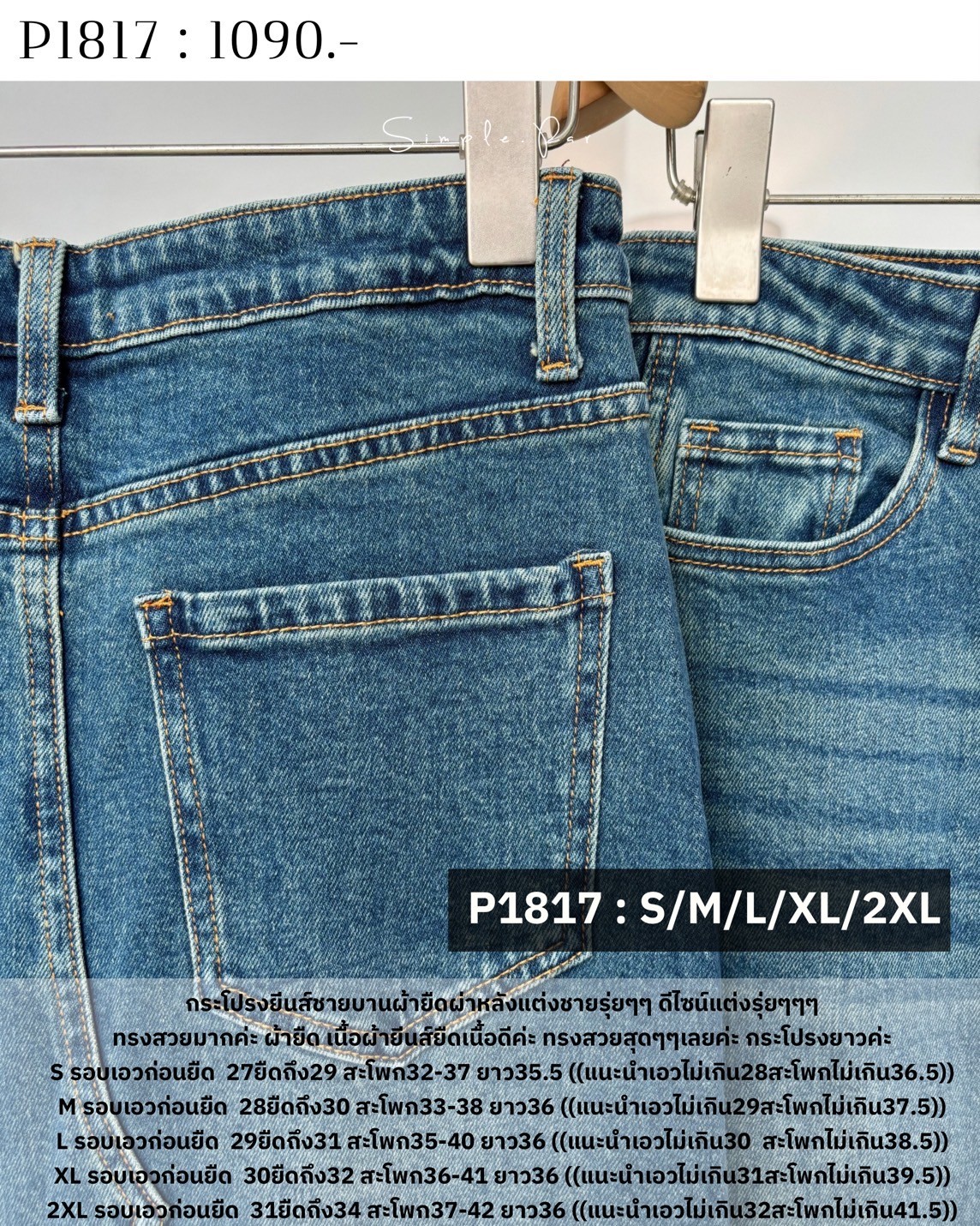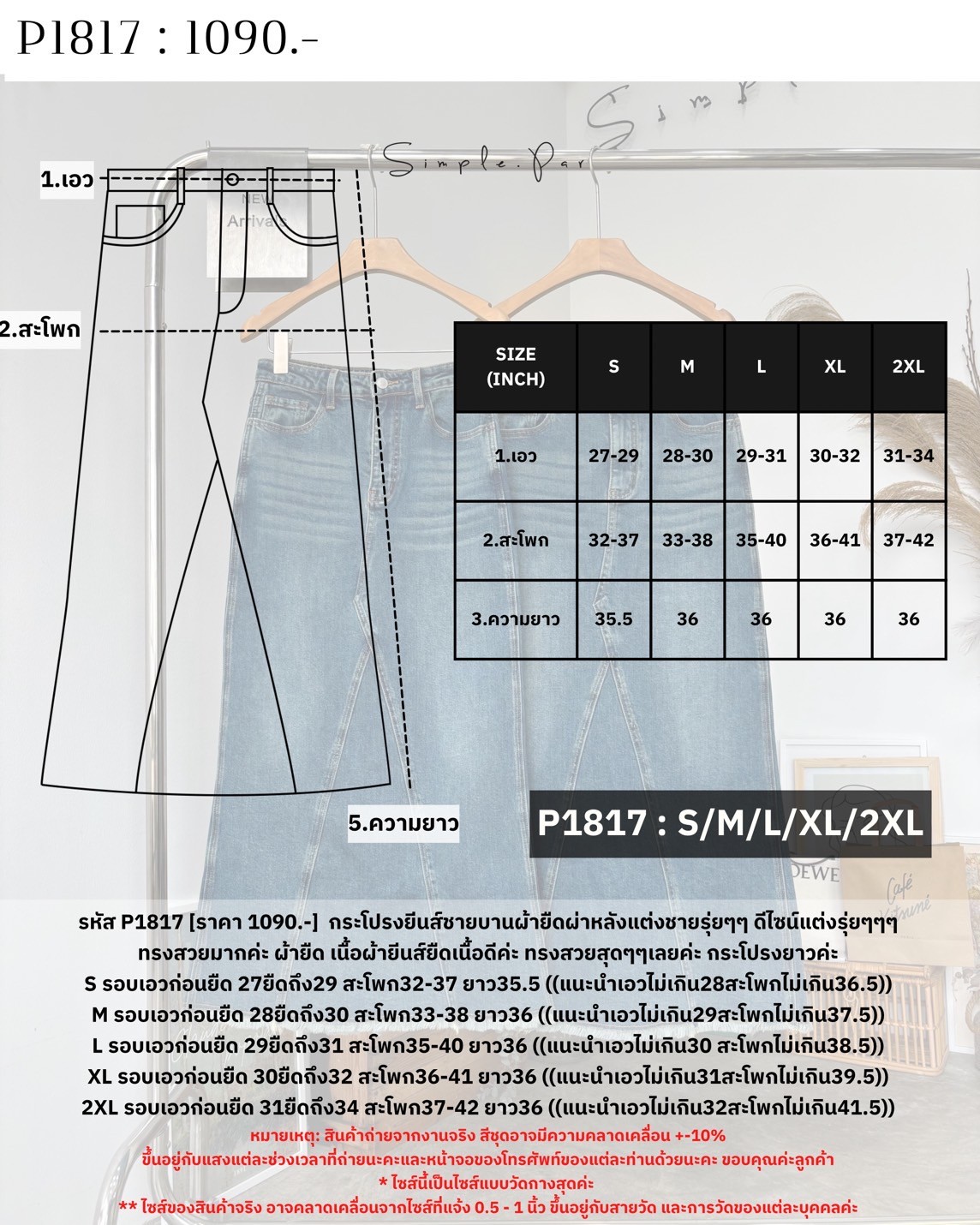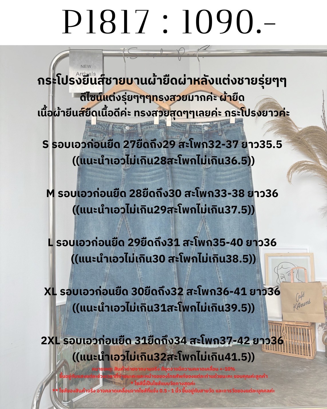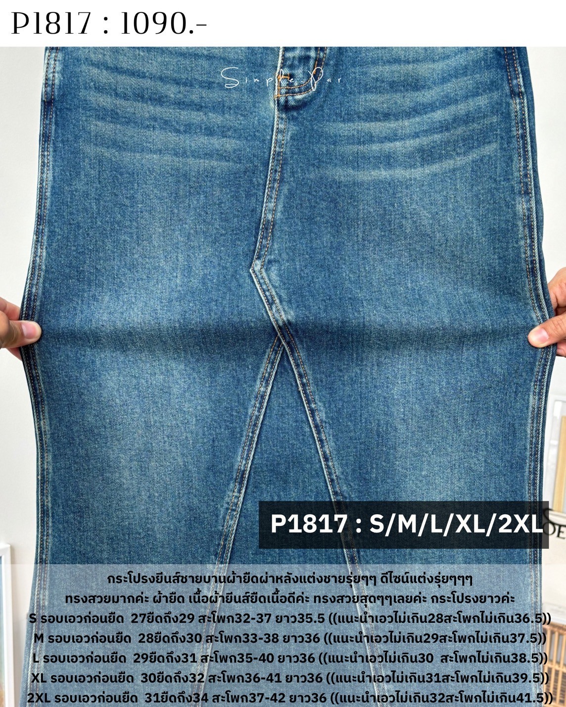 P1817 : กระโปรงยีนส์ชายบานผ้ายืดผ่าหลังแต่งชายรุ่ยๆๆ ดีไซน์แต่งรุ่ยๆๆๆ ...